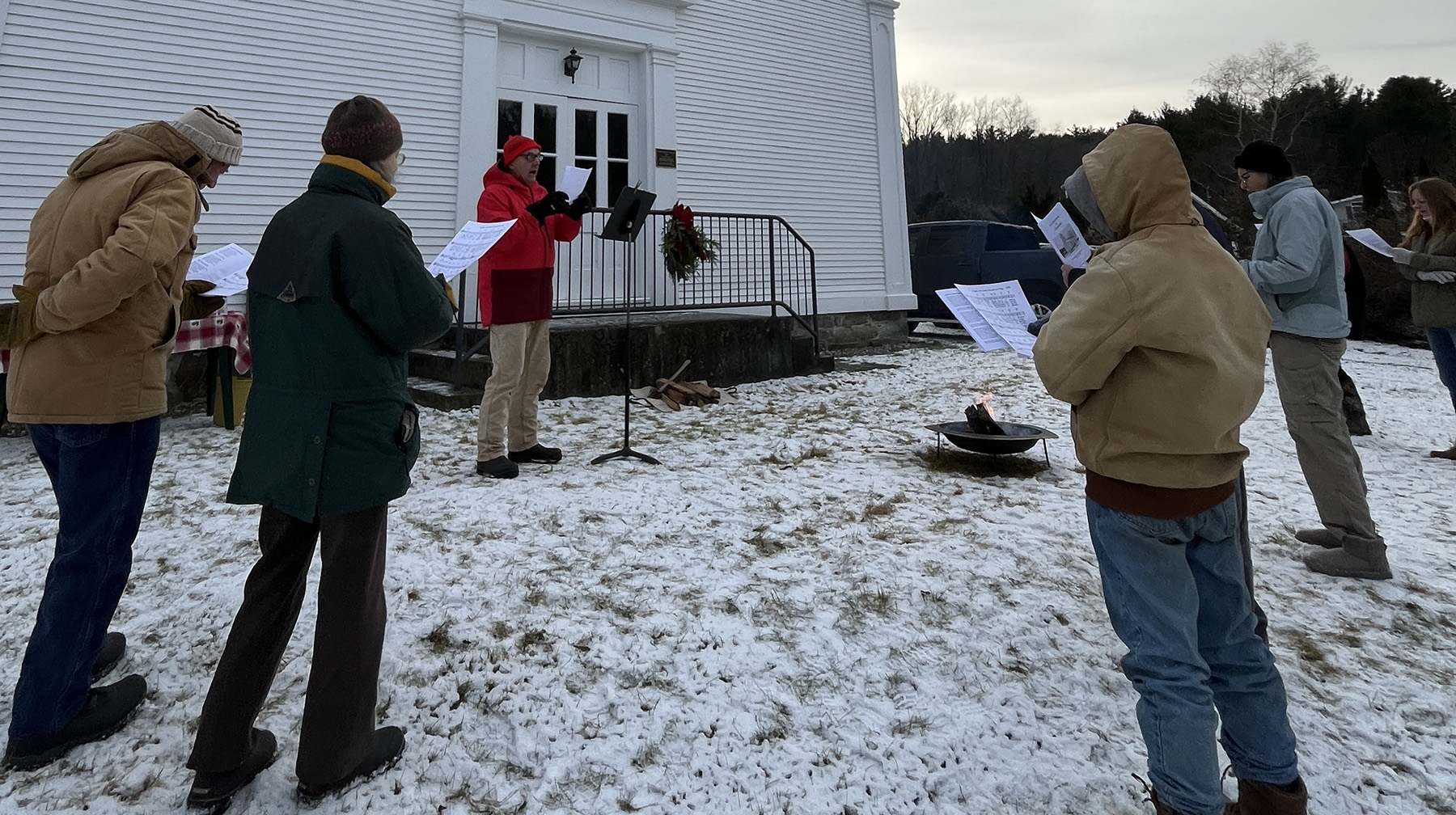 Singers gather outside the East Monkton Church for Songs of the Season, 2024