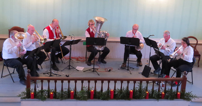 Sounding Brass performing in the church sanctuary, 2015