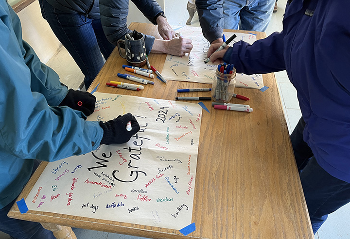 Participants write down their thoughts during a Gratitude Observation at the East Monkton Church, 2024