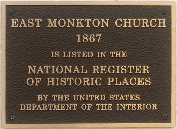 The East Monkton Church was listed in the National Register of Historic Places on the basis of 1) its social history, as an important community gathering place for religious and secular activities, and 2) its architecture, as an example of a Greek Revival church building. This nomination was made under the “Religious Buildings, Sites, and Structures in Vermont” Multiple Property Listing, within the historic context of “Religious Trends 1615-1950.” The church’s level of significance is local. Its period of significance began in 1866 with the building’s construction, and ended circa 1960 when use of the building for religious and secular purposes largely stopped. Active use began again in the mid-1970s and continues today.